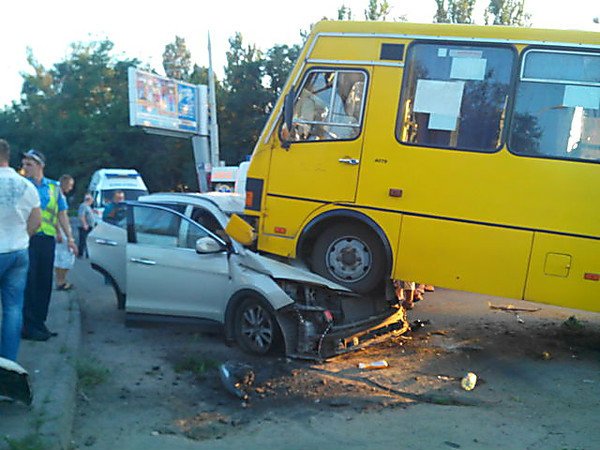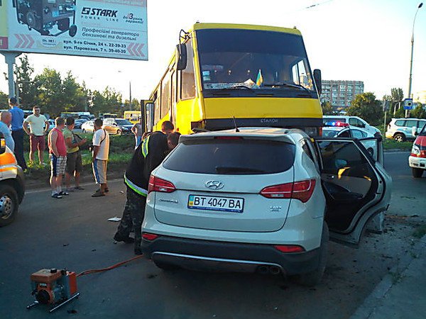 Во вторник, 21 июля, в Херсоне по адресу Николаевское шоссе произошло ДТП. Маршрутный автобус «Еталон», в буквальном смысле, наехал на внедорожник Hyundai Santa Fe, сообщает .