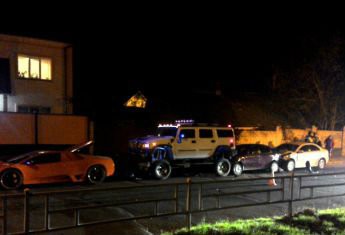 От удара Daewoo Lanos по инерции отбросило на автомобиль Hummer Н2, который, в свою очередь, по инерции отбросило на автомобиль Lamborghini.