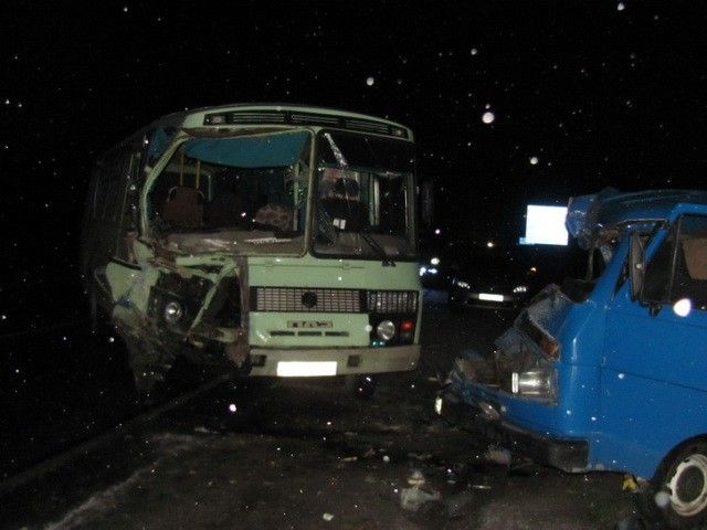 6 января, в 17:20, в Херсонской области на подъезде к городу Каховка произошло дорожно-транспортное происшествие с тяжелыми последствиями. По предварительным данным водитель автомобиля VOLKSWAGEN LT 28 не справился с управлением и выехал на полосу встречного движения, где совершил лобовое столкновение с автобусом «ПАЗ 4234».