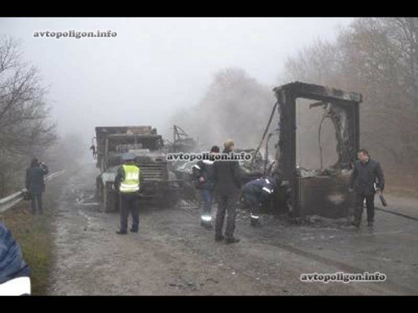 В результате столкновения автомобиль "МАN" загорелся. Водителя не удалось извлечь из кабины и он, к сожалению, сгорел заживо. Сгорели также документы и номера автомобиля, поэтому правоохранители работают над установлением личности водителя грузовика. Мужчина, находившийся за рулем "КрАЗа", не пострадал.