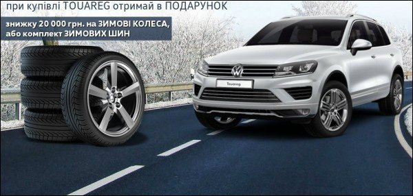 ТОВ “Престиж-Авто”, офіційний дилер Volkswagen в Хмельницькому, при купівлі Volkswagen Touareg ДАРУЄ КОЖНОМУ комплект зимових шин АБО ЗНИЖКУ в розмірі 20 000 грн на комплект зимових коліс у зборі!