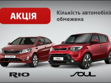 Официальный дистрибьютор автомобилей КІА в Украине, компания «ФАЛЬКОН-АВТО», информирует о том, что до конца ноября 2015 года КІА Rio и Soul 2014 г.в. можно купить по выгодной цене. Предложение действительно до 30.11.2015 г. Количество автомобилей ограничено..