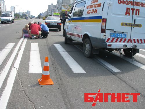 В понедельник, 8 августа, на улице Ревуцкого оперативный автомобиль ВАЗ-21099, принадлежащий одной из охранных фирм, сбил женщину, переходившую проезжую часть по нерегулируемому пешеходному переходу, сообщает .
