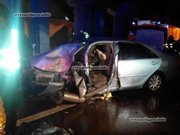 Водитель автомобиля Toyota Camry по невыясненным доподлинно причинам, скорее всего, из-за скользкой дороги, не справился с управлением, в результате чего машина врезалась в опору путепровода.