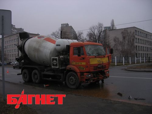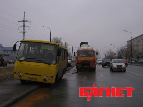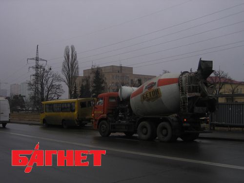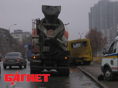 Киев: бетономешалка протаранила маршрутный автобус. (Фото)