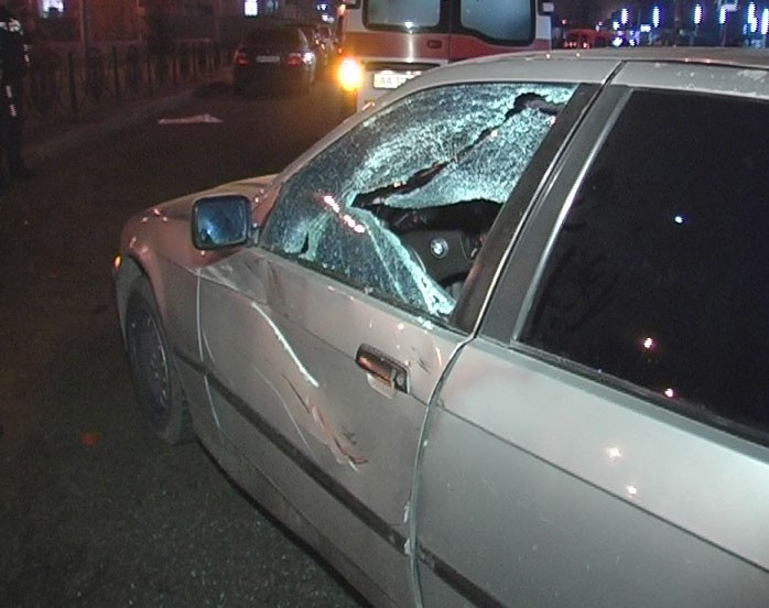 У BMW от удара треснуло боковое стекло. Водитель немецкой иномарки не пострадал.
