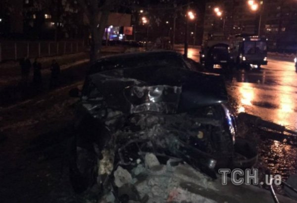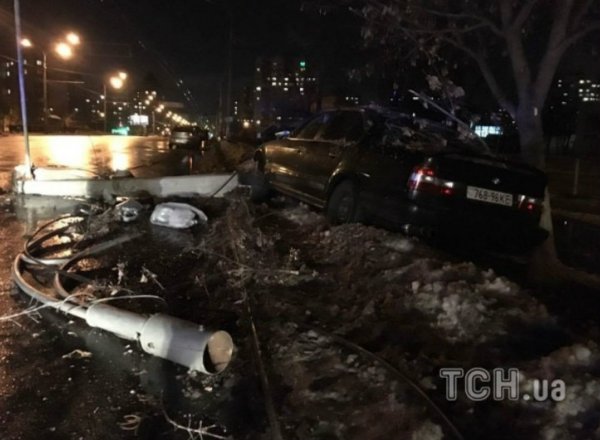 В Киеве BMW врезался в бетонный столб и повалил его. Авария произошла на столичной Оболони вечером 28 января, в 20:40, сообщает .