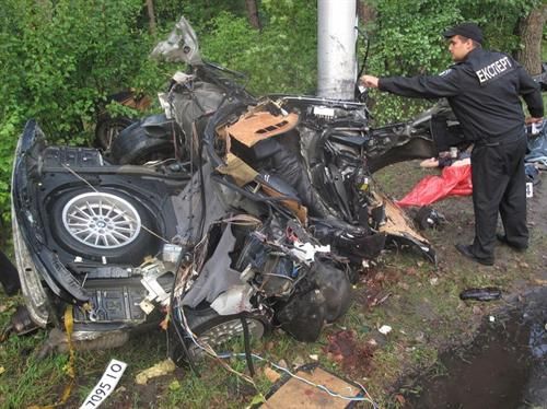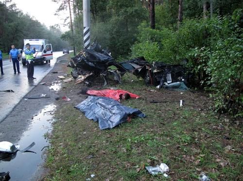 Киев: BMW влетел в столб - погибли пять человек. (Фото)