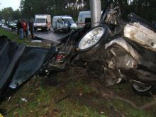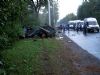 - Водитель несся на огромной скорости, порядка 180 км/час. И хотя участок дороги на 23-м километре дороги достаточно ровный, асфальт был мокрый. Вероятнее всего, шофер потерял управление и врезался в бетонную опору, которая словно гильотина разрезала иномарку надвое, - говорят водители, которые были на месте происшествия.