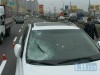 По предварительным данным, водитель автомобиля Chevrolet Laceti, двигаясь в направлении Южного моста, не справился с управлением, машину вынесло на разделительную полосу, где она врезалась в опору рекламного щита. Из багажника Laceti вылетело запасное колесо и попало в лобовое стекло проезжавшего Lexus RX.