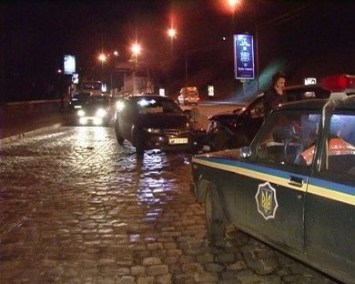 В Киеве, на Владимирском спуске, не смогли разъехаться три автомобиля: Chrysler PT Cruiser и две Honda Accord, сообщает .