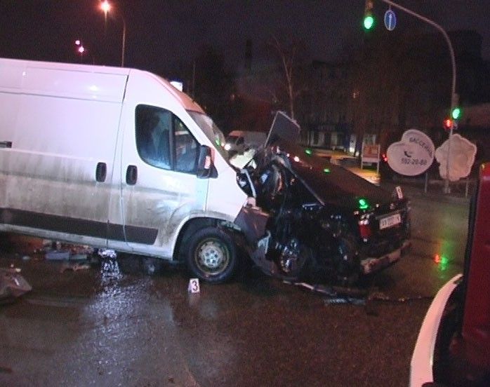 Это ДТП произошло в г. Киев, на пересечении улиц Межигорской и Набережно-Луговой сегодня, 26 февраля приблизительно в 17:15. По предварительным данным, микровавтобус Citroen Jumper ехал от Московского проспекта по Новоконстантиновской-Межигорской в направлении Набережно-Луговой (Речвокзала), а люксовый седан Lexus LS 460 ему навстречу - по Набережно-Луговой от улицы Еленовской в направлении Межигорской, сообщает .