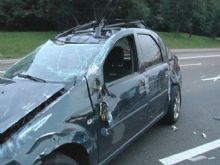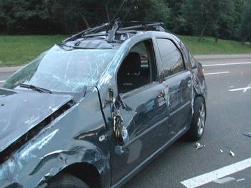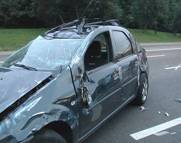 Внезапно итальянскую иномарку со второй полосы догнал автомобиль Dacia Logan и ударил в правые задние двери. После это Dacia вылетела на обочину, вернулась на проезжую часть, опрокинулась несколько раз и остановилась во второй полосе.