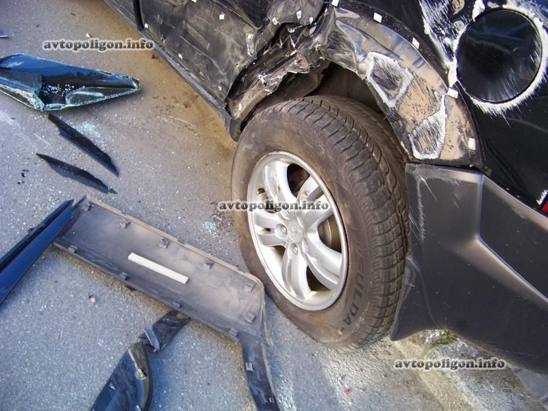 В результате британский кроссовер врезался в заднюю левую дверь и колесо «корейца». После удара Hyundai Tucson развернуло и занесло и в итоге он опрокинулся. Через некоторое время он был поставлен на колеса.
