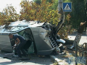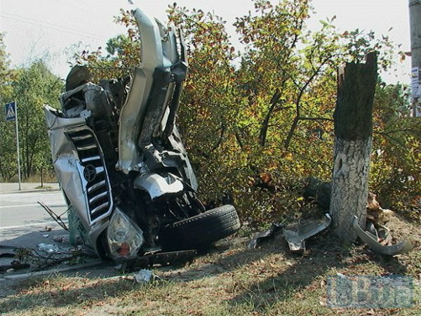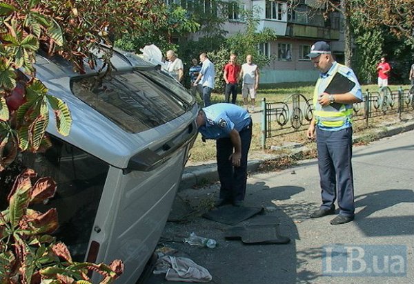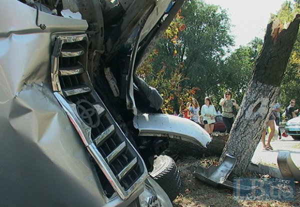 В среду, 3 сентября, днем в Киеве, на улице Жукова, внедорожник Toyota Land Cruiser Prado, протаранив легковушку, врезался в столб, а затем дерево и перевернулся, сообщает .