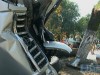 После столкновения внедорожник вылетел на тротуар, врезался в осветительный столб, а затем в дерево. Сломав дерево и вырвав одну из секций металлического ограждения, Toyota перевернулась набок.