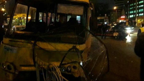 Удар был такой силы, что 8-тонную маршрутку выбросило за пределы дороги, и она врезалась в металлическое ограждение, отделяющее проезжую часть от тротуара.