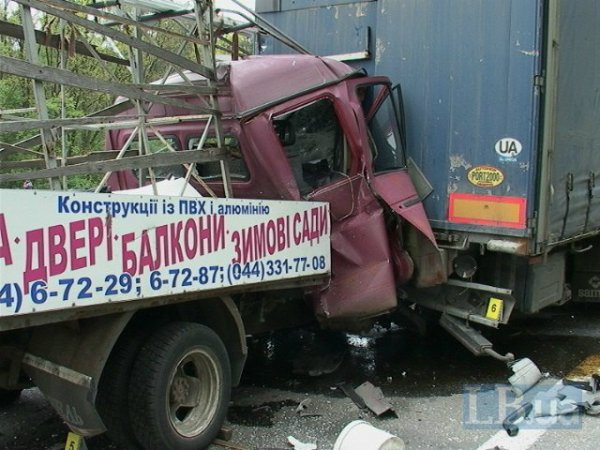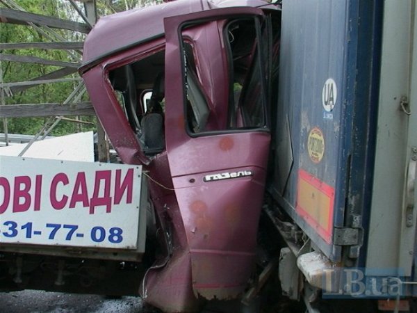 Киев: ГАЗель влетела в грузовик. Водитель погиб. (Фото)