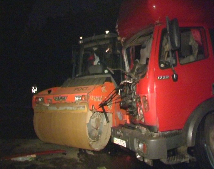 В результате ДТП грузовой автомобиль получил серьезные повреждения, пострадал также серьезно и дорожный каток. А водитель асфальтоукладчика получил серьезные травмы, с которыми был госпитализирован в больницу медиками «скорой помощи».