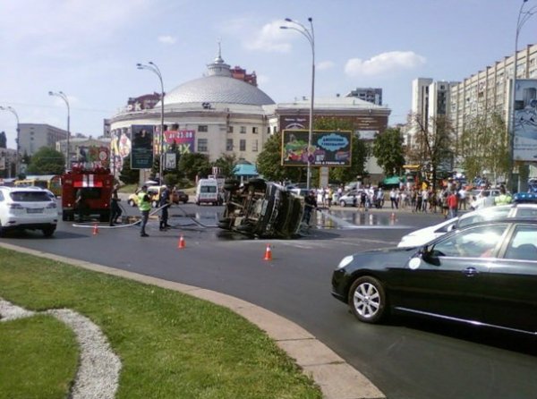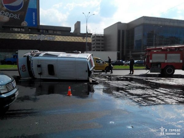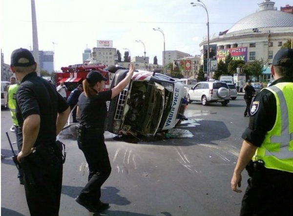 В Киеве на площади Победы после столкновения с авто несколько раз перевернулась машина "скорой медицинской помощи". В аварии пострадали три человека, которые находились в машине, сообщает .