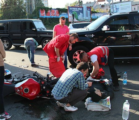 Киев: известный певец за рулем мотоцикла столкнулся с внедорожником Cadillac Escalade. (Фото)