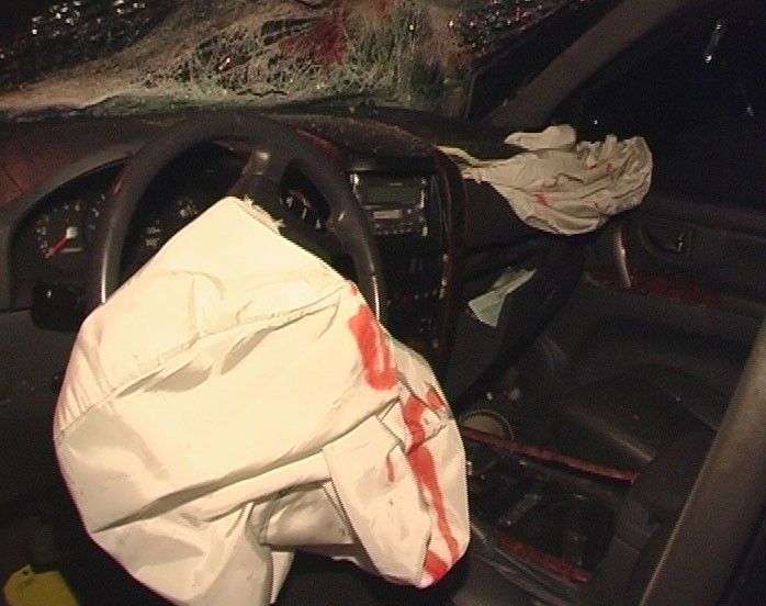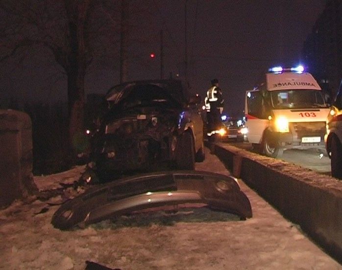 Машина остановилась даже не на проезжей части, а на тротуаре. Следует отметить, что этот самый тротуар защищен железобетонной балкой высотой примерно в 30 сантиметров. Как авто перескочило через балку, пока неизвестно. Но в результате головокружительного скачка парень и девушка, ехавшие в автомобиле, получили травмы.