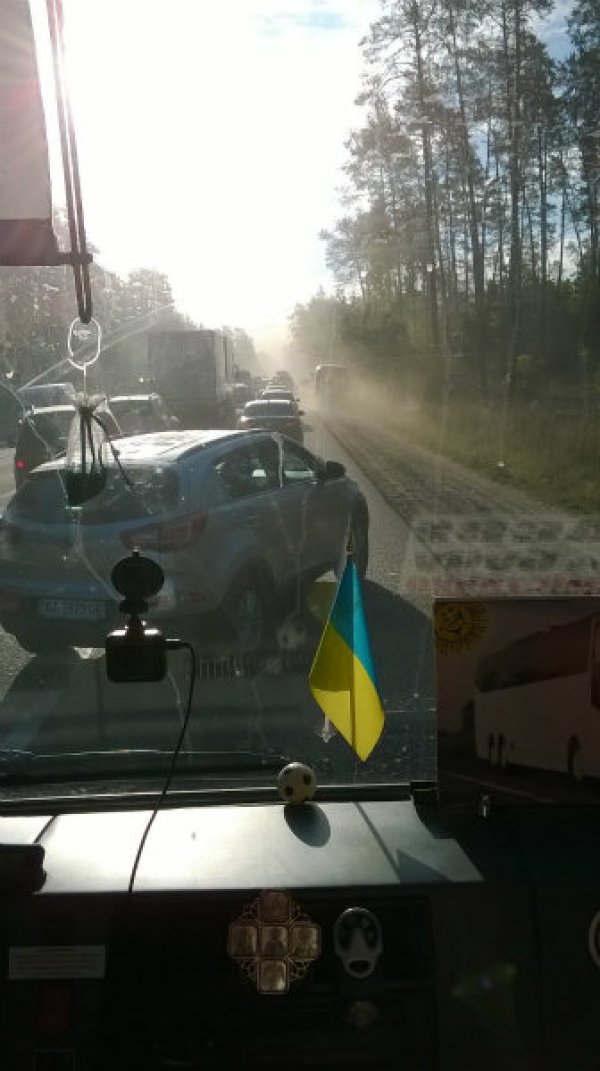 Из-за аварии, произошедшей около пяти часов утра, на Варшавской трассе в направлении Киева образовалась огромная пробка. Водители пригородных автобусов сообщают, что на объездных дорогах через Ирпень и Пущу-Водицу – также заторы.