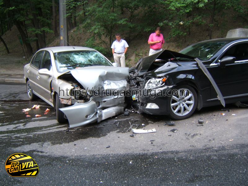 ДТП произошло 02.06.11 в начале восьмого утра. На Парковой алее, на повороте с ограниченной видимостью, сразу же за мостом любви столкнулись автомобили Lexus LS-460, под управлением 19-летнего юноши и Kia Rio под управлением 44-летнего водителя.