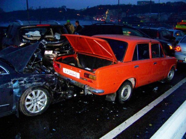В Киеве на Гаванском мосту вечером 19 апреля произошло ужасное ДТП, в результате которого было разбито 9 автомобилей. В аварии пострадали пять человек, в частности, серьезные травмы получили беременная женщина и один из водителей.