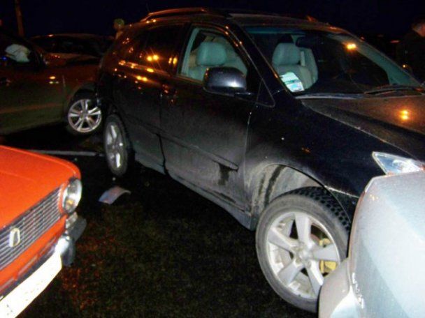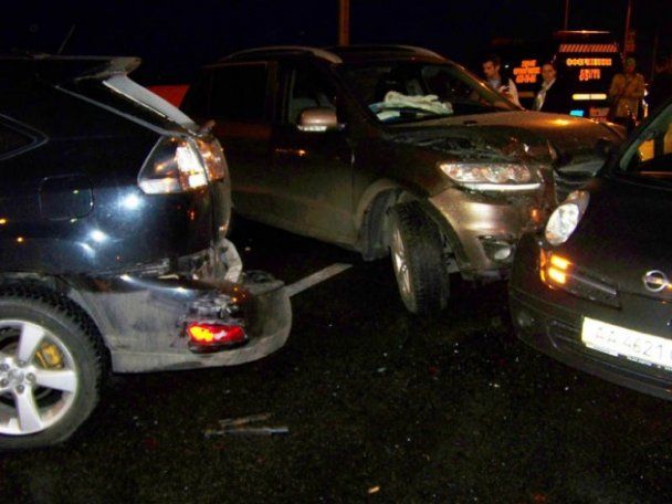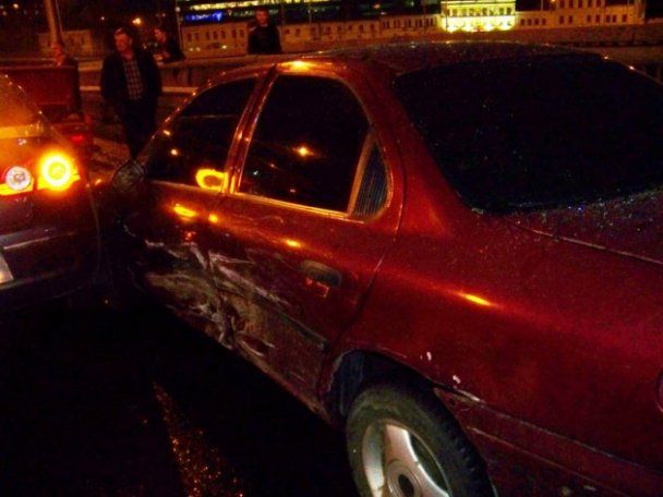 Виновником аварии стал Volkswagen Passat, который на большой скорости вылетел на мост и врезался в автомобили, стоявшие на выезд в сторону Набережно-Крещатицкой улицы. Сначала Volkswagen ударил Hyundai Santa Fe, Ford и ВАЗ-2101. От удара Hyundai влетел в Lexus RX, который, в свою очередь зацепил Chevrolet Tacuma, Nissan Micra и Nissan Almera. Также в аварии повреждения получил автомобиль Citroen.