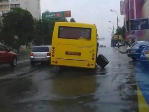 Яркий пример случился в четверг на улице Гетьмана. Маршрутка Богдан набитая людьми едва отъехала от остановки и тут же развалилась. У автобуса отпала задняя пара колес. По словам очевидцев, пассажиров спасло только то что скорость автобуса была слишком маленькой.