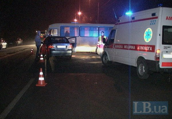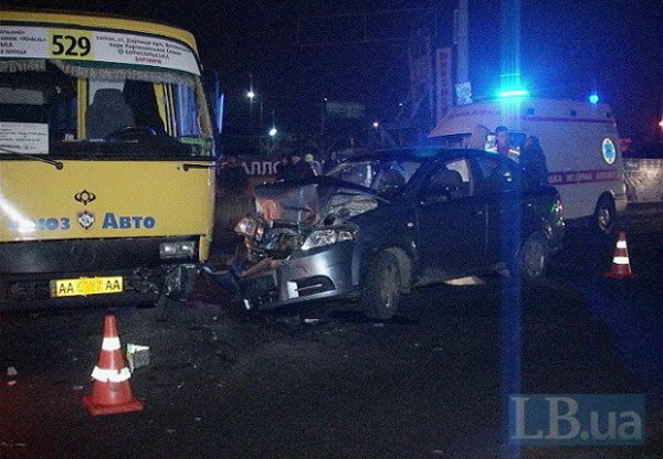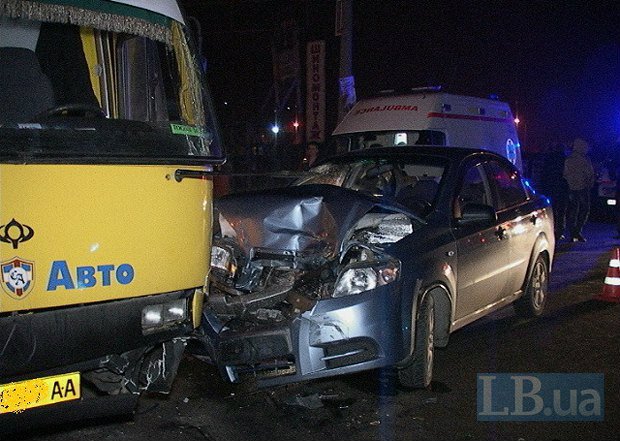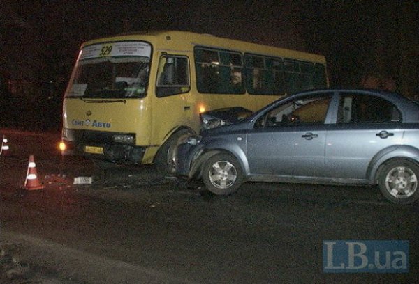 В воскресенье, 18 января поздно вечером в Киеве, в микрорайоне Бортничи, автомобиль Chevrolet протаранил маршрутный автобус "Богдан".