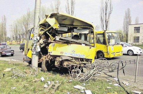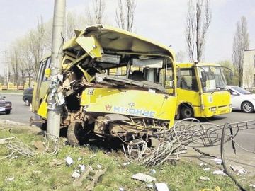 26 апреля, на проспекте Гагарина, 19, что в Днепровском районе столицы, в 15:00 маршрутка с пассажирами въехала в столб из-за солнца, сообщает .
