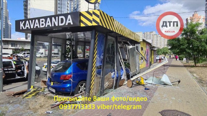 В пятницу, 14 августа на пересечении Княжего Затона и Днепровскои Набережной столкнулись Lexus и Mazda. После удара Mazda вылетела на тротуар и врезалась в кофеиню.