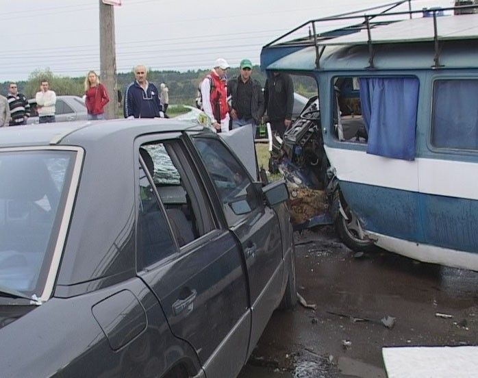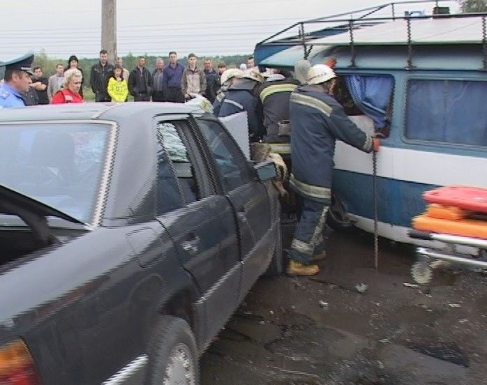 Несмотря на то, что водитель Мерседеса пытался тормозить (тормозной путь 70-80 метров) скорость полностью погасить не удалось – поэтому старому микроавтобусу досталось очень сильно- его передняя часть сильно смялась, зажав там водителя. Прибывшие спасатели МЧС вызволили пострадавшего из искореженного автобуса и передали его медикам. Также был госпитализирован пассажир из микроавтобуса, а также водитель Мерседеса и его двое попутчиков. Всего на место ДТП прибыло пять карет «скорой помощи».