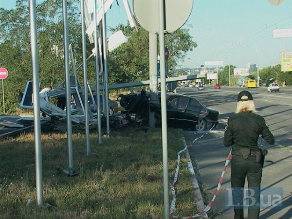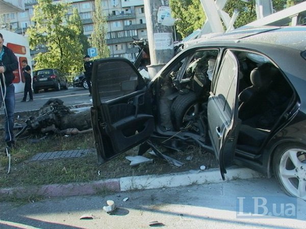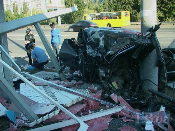 В пятницу, 31 июля около пяти утра в Киеве на проспекте Воссоединения автомобиль Mercedes протаранил осветительную опору на АЗС, сообщает .
