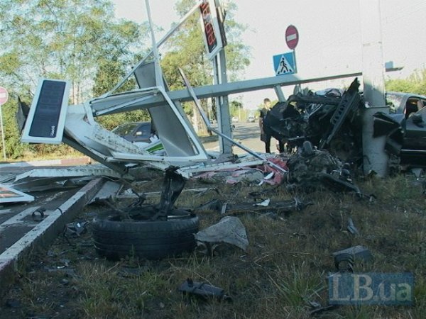 Удар был такой силы, что двигатель вылетел из моторного отсека, одно из передних колес вмяло в салон, другое отлетело на несколько метров. Обломки люксового авто разбросало по всей территории АЗС. Находившиеся в автомобиле водитель и его пассажирка получили тяжелые травмы и были госпитализированы.