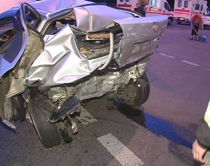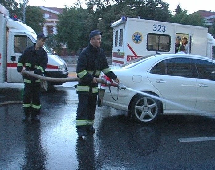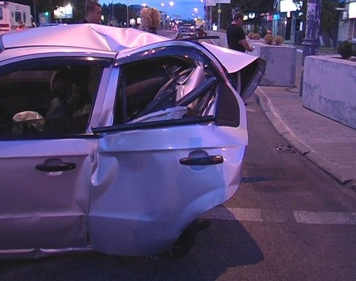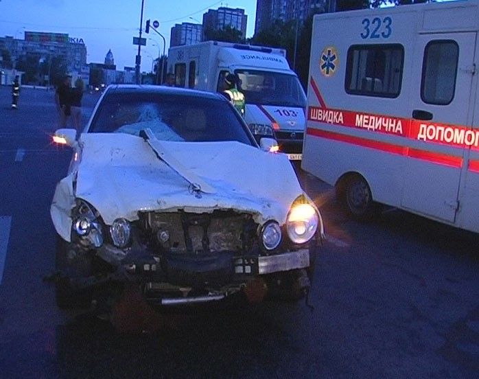 По предварительным данным, автомобиль Ford остановился на светофоре, за ним стоял Chevrolet Aveo. Mercedes на скорости въехал Chevrolet и отбросил его в сторону и следом же протаранил Ford.