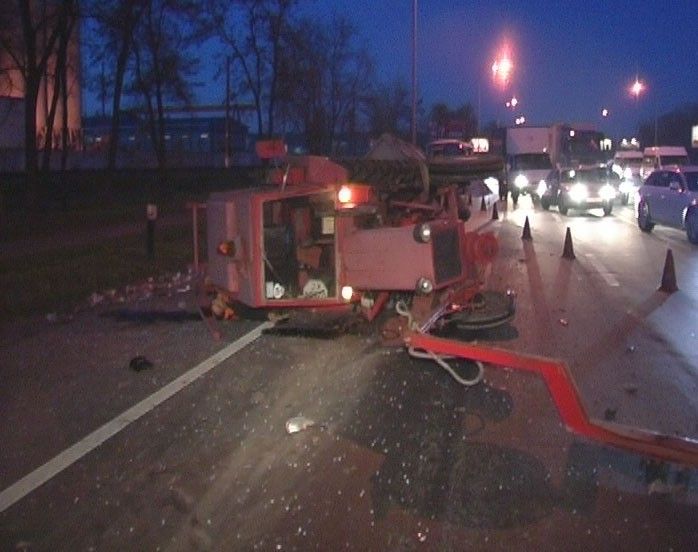 В это время во втором ряду находился трактор с прицепом коммунальный службы района. По предварительным данным, во время опережения попутного транспорта водитель Toyota Venza не рассчитал боковой интервал и столкнулся с правым бортом прицепом, затем с трактором, от чего последний завалился на бок.