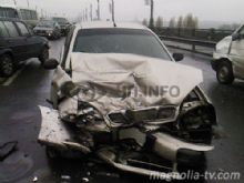 Травмы получили, как минимум, три человека. Из-за аварии движение транспорта по мосту практически блокировано. По предварительным данным, сперва столкнулись Opel и Daewoo Lanos. Последний после удара отлетел на встречную полосу, где в него врезались два микроавтобуса Volkswagen.