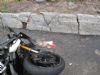 По невыясненным доподлинно причинам водитель не справился с управлением спортбайка, после чего тот вылетел на бордюрный камень (справа), затем на тротуар и врезался в высокий бордюр (об который уже не раз бились и мотоциклы и автомобили).