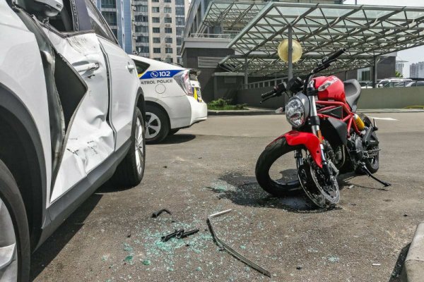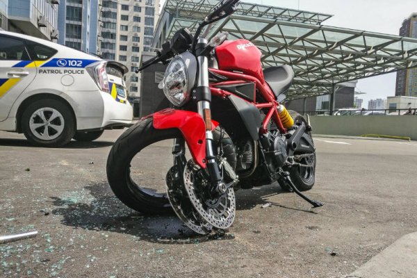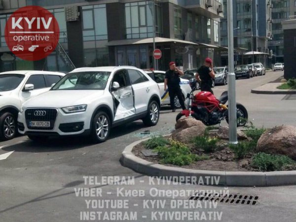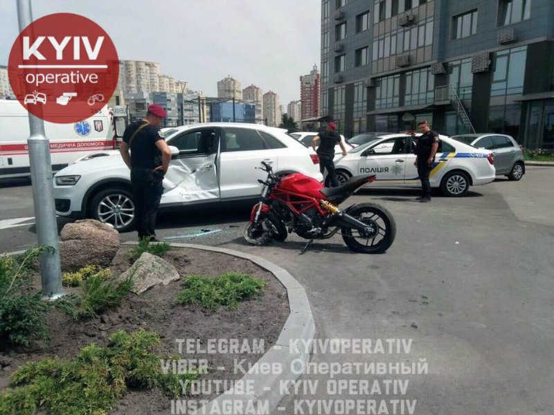 В воскресенье, 16 июня, в Киеве на парковке дома по адресу улица Трускавецкая, 6а произошла авария с участием пилота мотоцикла Ducati и автомобиля Audi Q3.