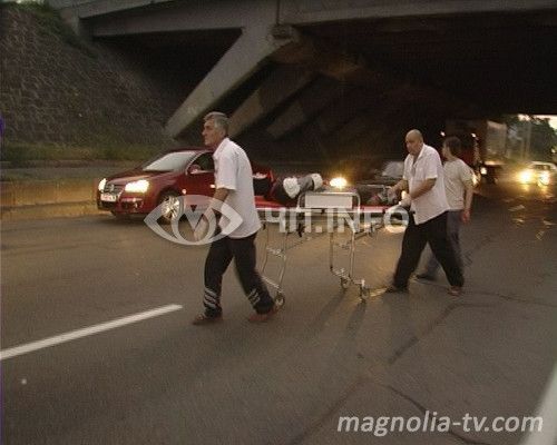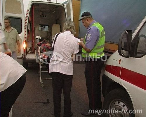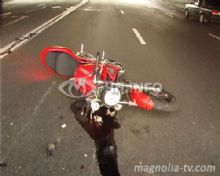 Мотоцикл сбил женщину. Удар был очень мощный - с женщины почти полностью слетела вся одежда. Помощь потребовалась также водителю и пассажиру мотоцикла.