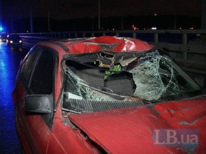 Ужасное ДТП произошло в воскресенье вечером в Киеве на Дарницком мосту. Автомобиль Opel, двигаясь в направлении левого берега, сбил насмерть мужчину, ходившего по проезжей части, сообщает .