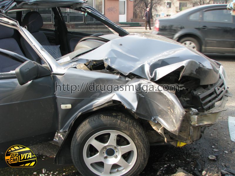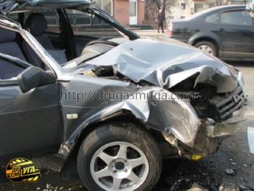 Водитель и пассажир «девятки» были госпитализированы в БСМП с ЗЧМТ и рваными ранами головы.