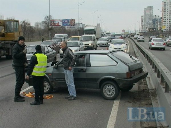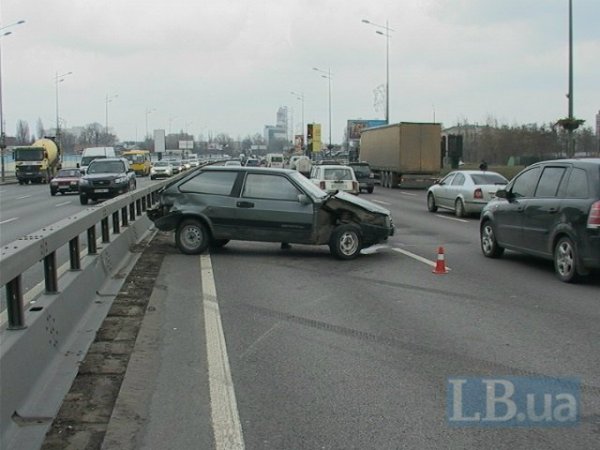 Во вторник, 22 марта, в Киеве на проспекте Бажана грузовик с полуприцепом DAF протаранил ВАЗ-2109, отбросив его в разделительный отбойник, сообщает .