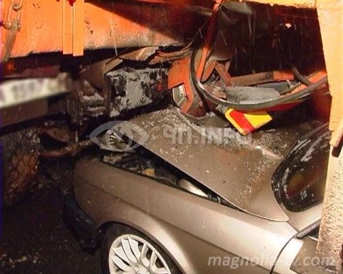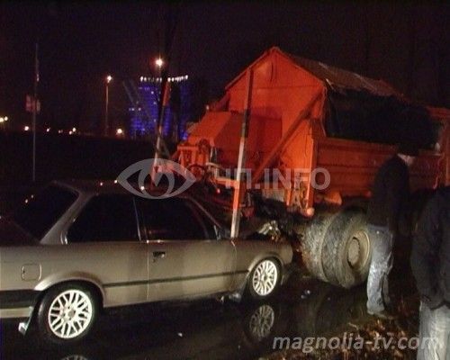 Киев: на скользкой дороге BMW занесло под «Камаз». (Фото)