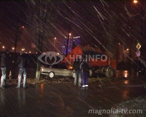 Как результат, машина влетела прямо в механизм, который рассыпает песок с солью.