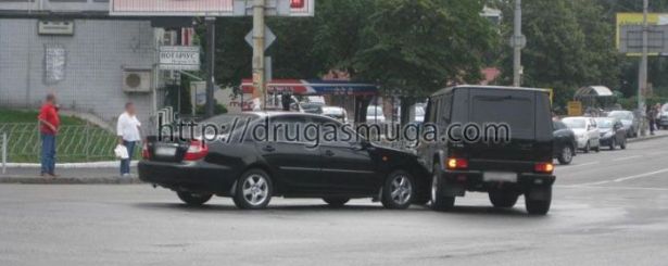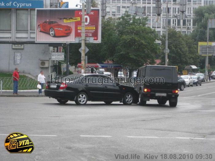 18.08.2010 около 09:00 на Соломенской площади Toyota Camry одесской регистрации, двигаясь с ул.Урицкого на ул.Соломенскую ровно посередине перекрестка уперлась в "киевский" Mercedes Benz G500, поворачивающий с Воздухофлотского проспекта на ул. Урицького.