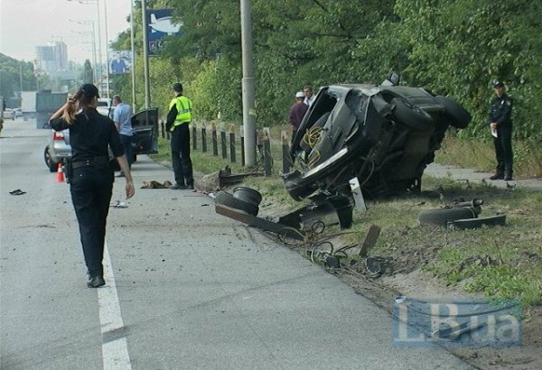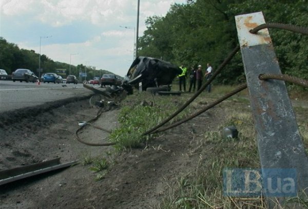 В среду в Киеве на Столичном шоссе внедорожник Mitsubishi, двигаясь в направлении Надднепрянского шоссе, по неизвестным причинам вылетел за пределы проезжей части, снес несколько секций ограждения и перевернулся, сообщает .